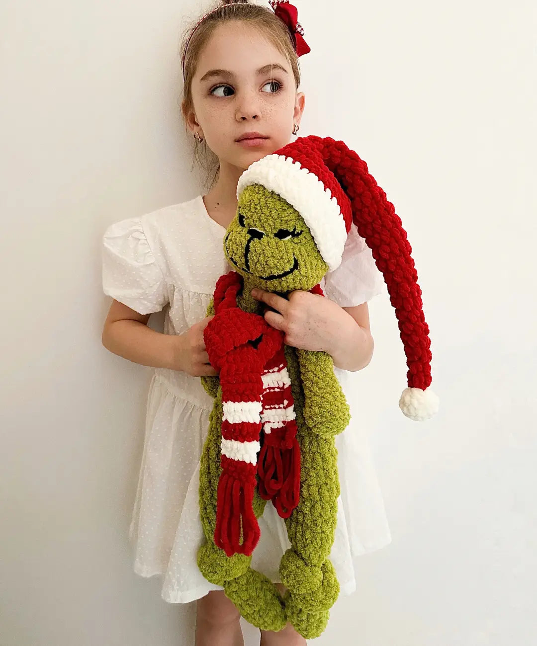 Confeccionado cuidadosamente con hilo hipoalergénico de alta calidad, este Grinch de crochet artesanal es suave, resistente y perfecto tanto como decoración navideña como regalo especial de Navidad.